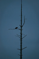 Right: Lonely crow sitting in a lonely tree top.