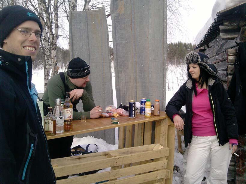 Here with fellow photog/bartender Isak Sandling, Sara Varga, Lars Hägglund, hotel owner Per-Arne Ylipää and some of the locals.